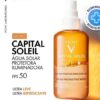 Protetor solar corporal iluminador. Vichy Capital Soleil FPS50 protege a pele dos raios solares, enquanto prolonga o bronzeamento.